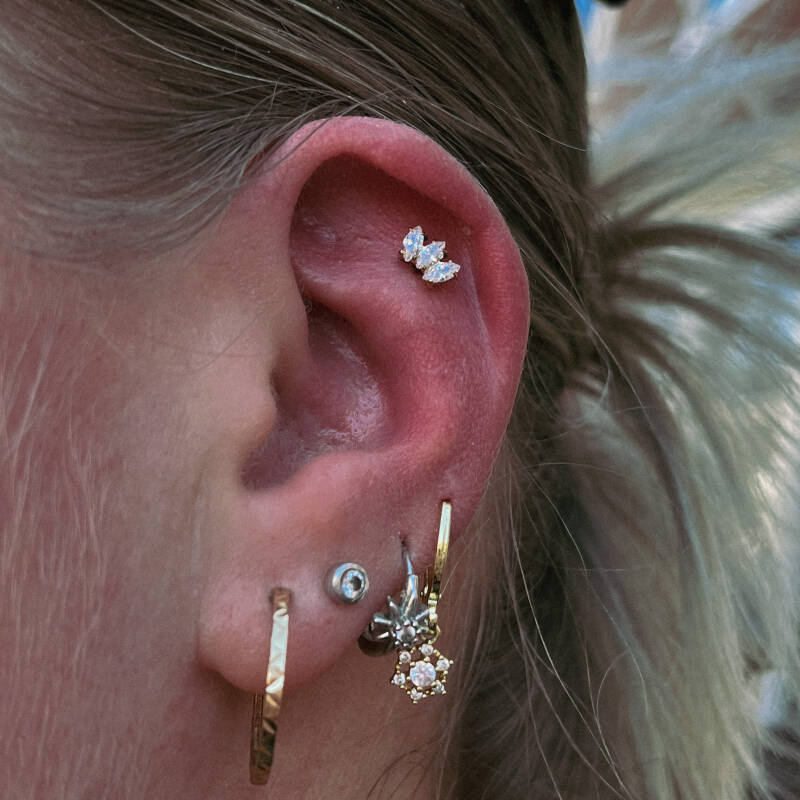 Dit is over het algemeen goed te doen. Het sieraad zal in het begin wat langer zijn in verband met de zwelling. De extra lengte van het staafje zit verstopt achter je oor en je zult hier minder snel aan blijven haken dan met een helix piercing. Maar pas goed op met het dragen van hoeden en mutsen en natuurlijk met het aan en uit trekken van je kleding. Echter, is het bij deze piercing heel belangrijk om het te laten downsizen. We raden natuurlijk af om op je oor te slapen. Maar we kunnen niet altijd tegen gaan wat we in ons slaap doen. Door er te veel op te liggen en niet op tijd te downsizen is de kans groot dat je piercing scheef zal groeien. Je sieraad zal dan in de meeste gevallen meer omhoog wijzen en je topje zal niet meer plat op je oor liggen. Hier is helaas niks meer aan te doen als het eenmaal gebeurd is. Ik raad mijn klanten altijd aan om de piecing na de eerste 4 weken te komen downsizen. Natuurlijk als dit mogelijk is en je zwelling is afgenomen. (rijstkussentjes of het dragen van een klem aan de zijkant van je hoofd kan voorkomen dat je direct op je nieuwe piercing ligt)